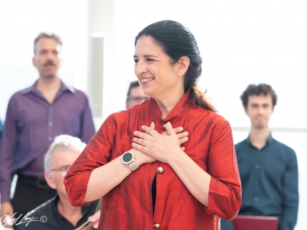 מנצחת - גילה בריל. נסו ותיהנו בשנה האחרונה הופיעה להקת שחר בפסטיבל אבו גוש עם תזמורת